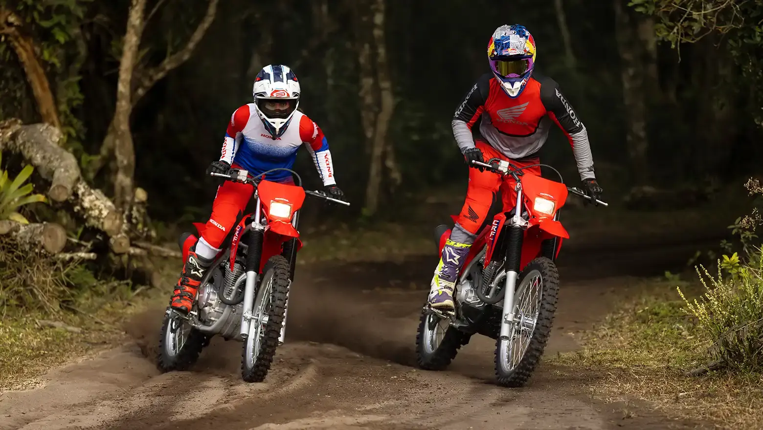 As linhas marcantes e carenagens robustas fazem da nova CRF 300F uma presença dominante nas trilhas.